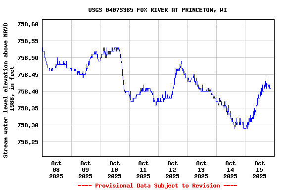 LOCATION.-- Lat 43°51'04", long 89°08'00", in SE 1/4 NW 1/4 SE 1/4 sec.24, T.16 N., R.11 E., Green Lake County, Hydrologic Unit 04030201 on right bank at upstream side of bridge on state highway 23, at Princeton, WI.